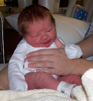 This is the best picture we have of his dimples. He has one on each side and you can barely see them. First night went great! We are tired but having fun. He is scheduled for circumcision today in the next hour - ouch!